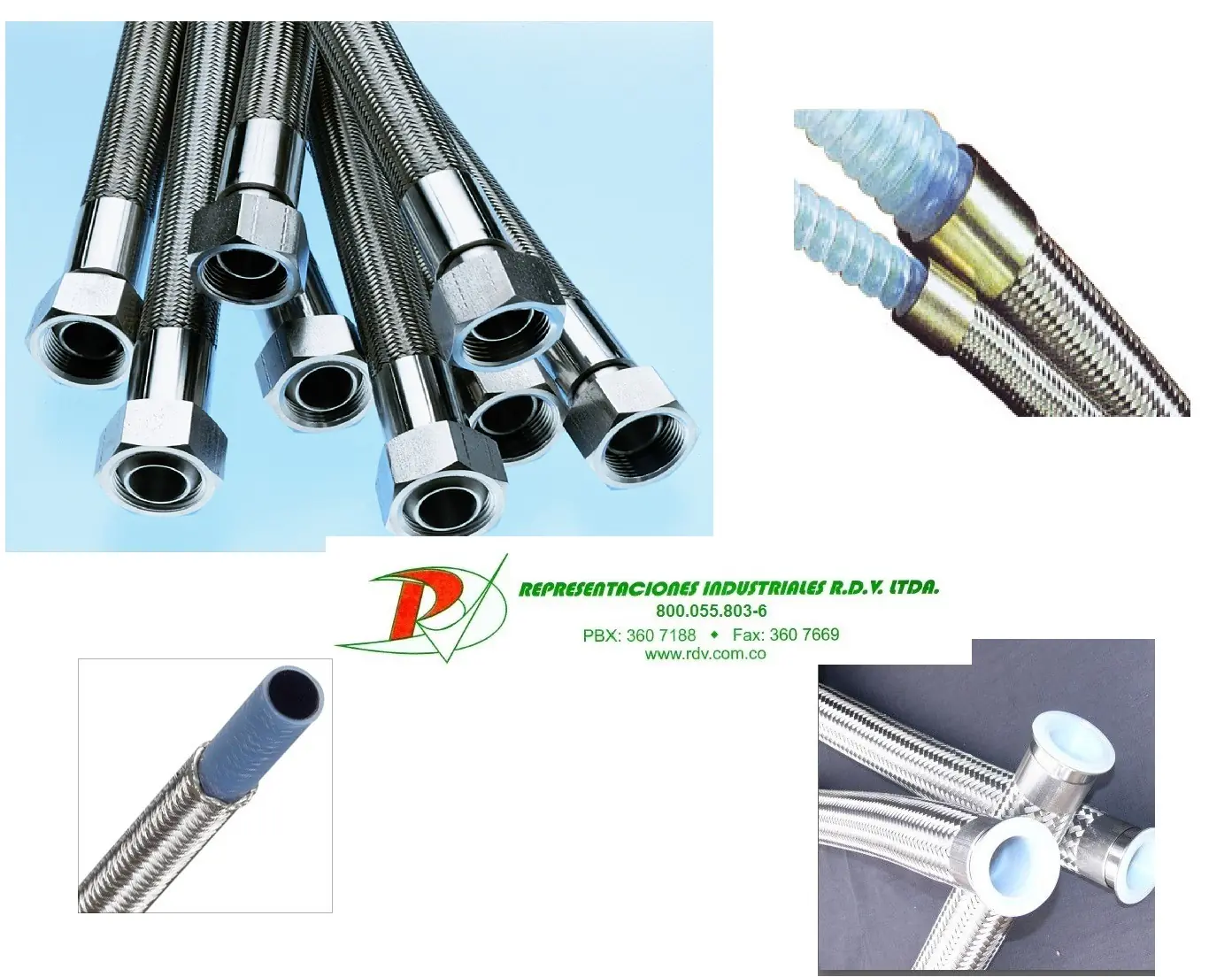 Manguera de Teflón Reforzada en Acero Inoxidable tiene propiedades únicas por su amplio rango de compatibilidad a numerosos fluidos y su alta resistencia a la corrosión. Esta manguera es químicamente inerte, esto significa que puede estar en contacto con otras sustancias sin reaccionar. Pocos químicos pueden atacar esta manguera.