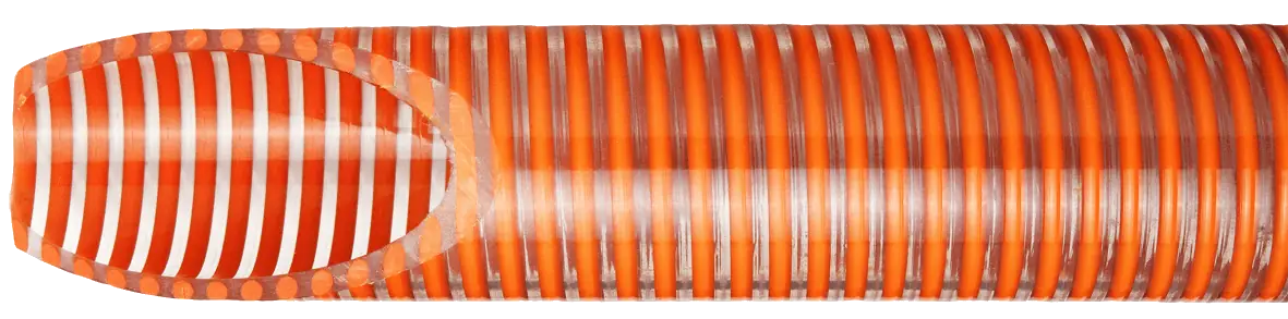 Manguera en PVC con espiral para succión y descargue ideal para trabajo pesado donde alta resistencia a presión sea necesaria. Para aplicaciones pesadas de succión y descarga en minería, lodos, productos químicos, riego agrícola, drenaje, dragado, construcción, manufactura, limpieza de pozos sépticos, alcantarillas, etc.